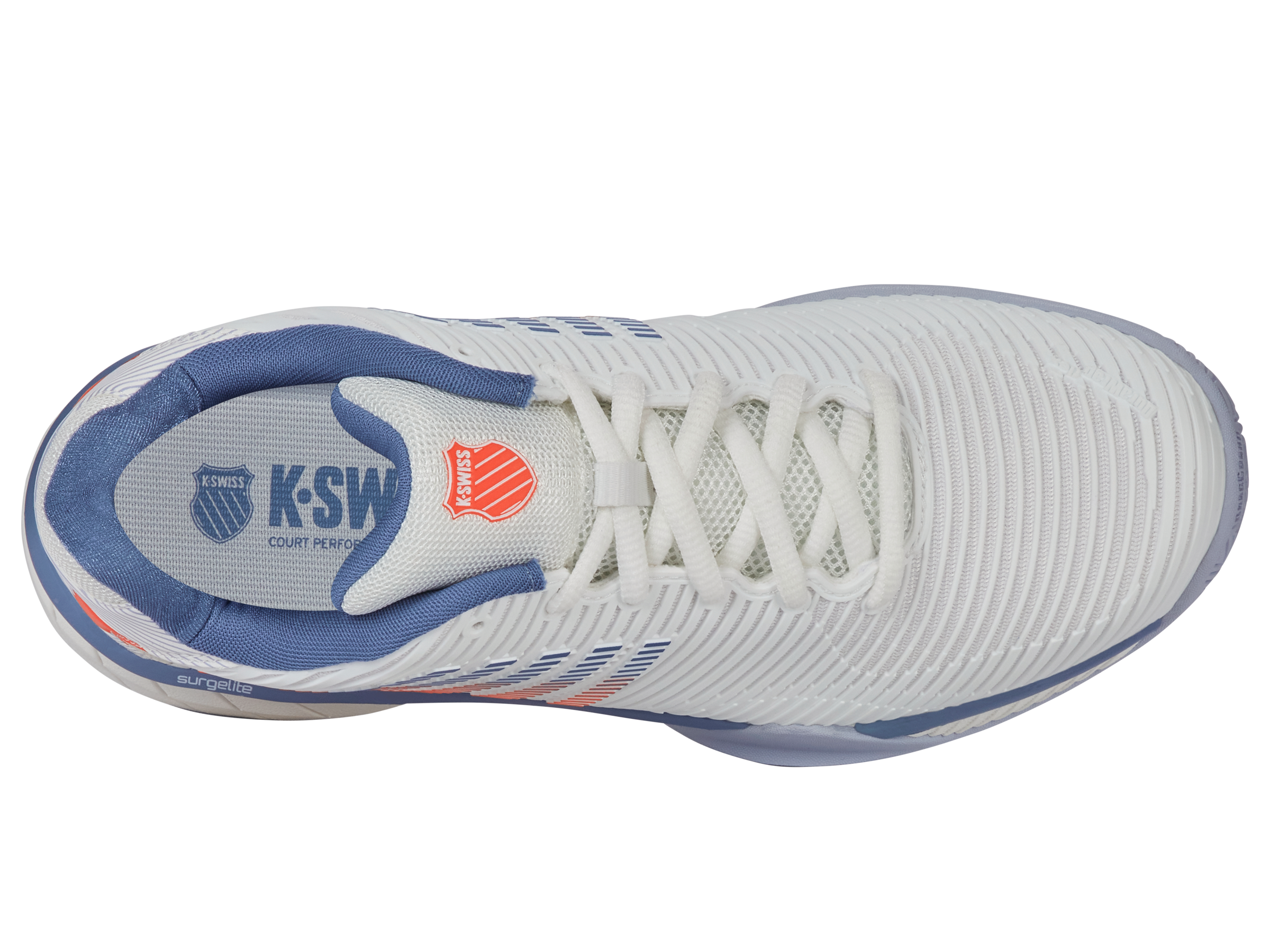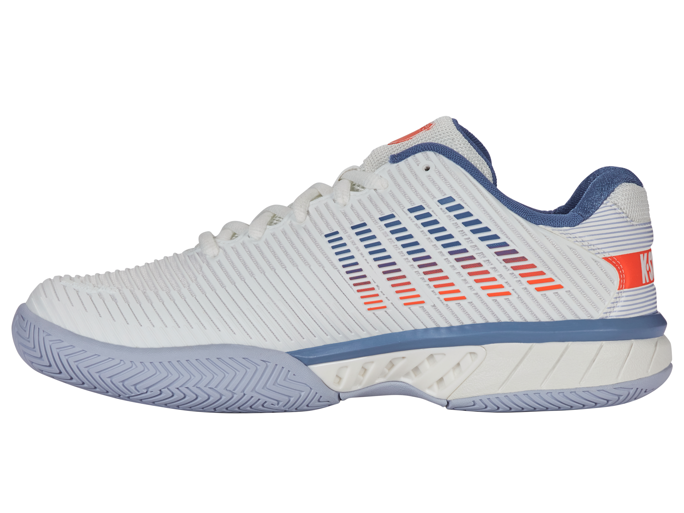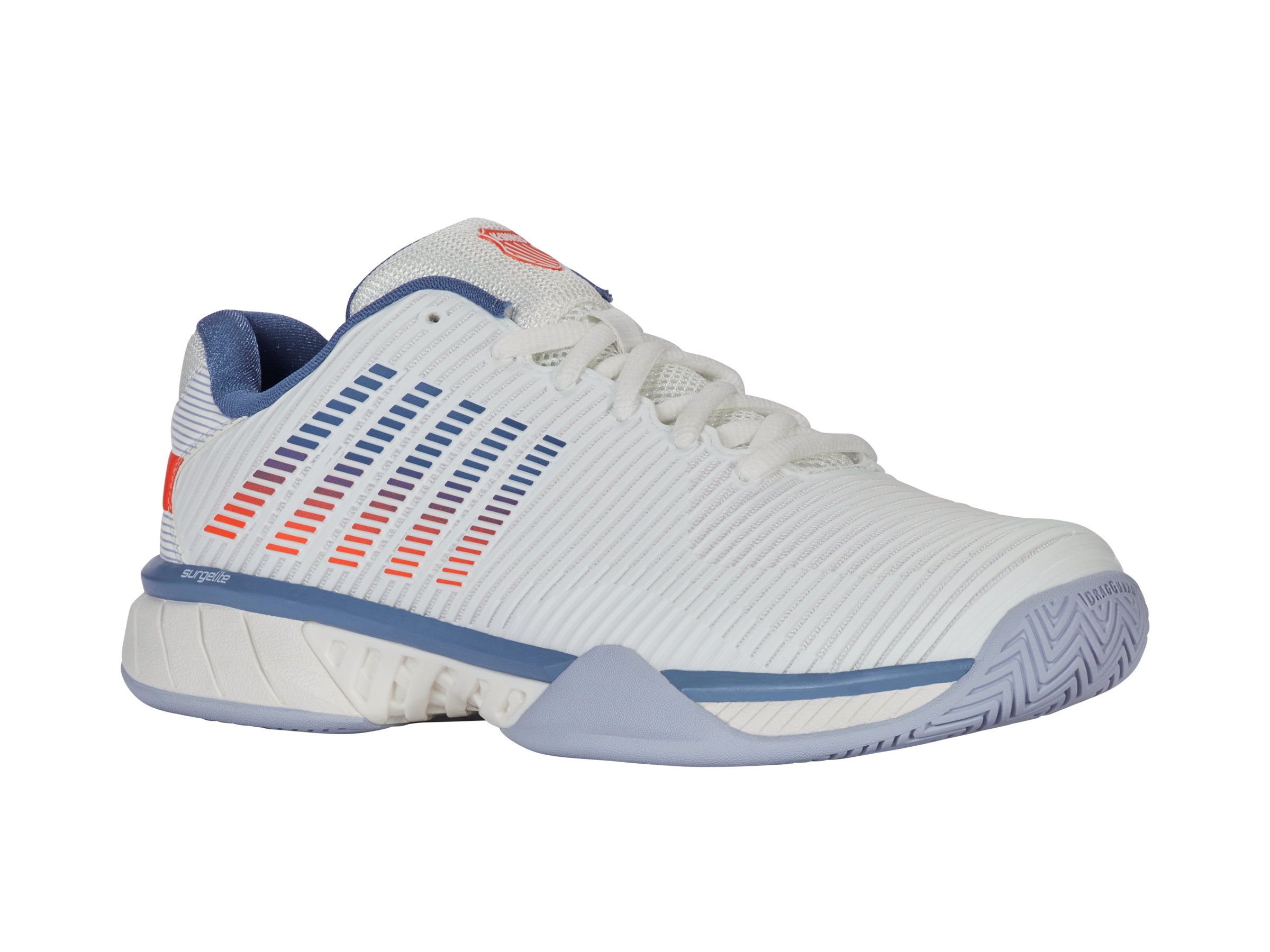 K-Swiss best-selling shoe, the Hypercourt Express 2, is light, comfortable, breathable, and has a generous fit, making it the ideal choice for a variety of playing styles and levels. Durawrap Flex, gives the shoe support with no break-in period, while Surgelite midsole technology provides all day comfort.