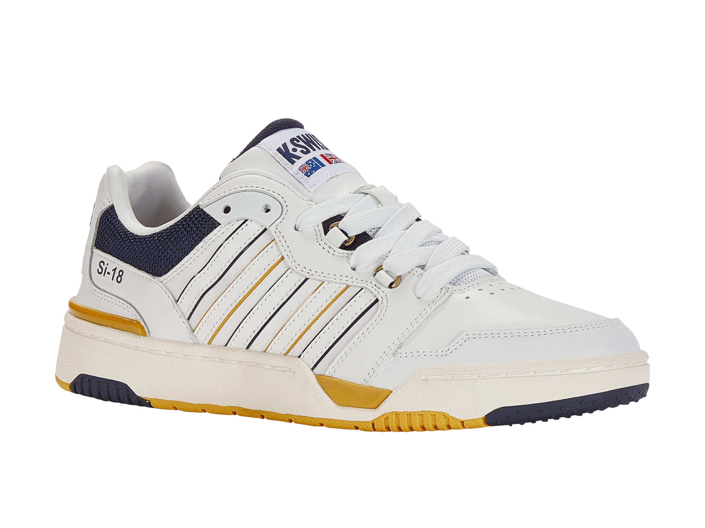 The SI-18 Rival takes inspiration from some of our heritage models from the 1980s and 90s. By taking the upper from the Si-18 Rannell training shoe and putting it on a cup sole bottom inspired by the iconic Si-18 Premier tennis shoe, we have made a sneaker that is fresh and new yet still authentic to our heritage tennis roots.