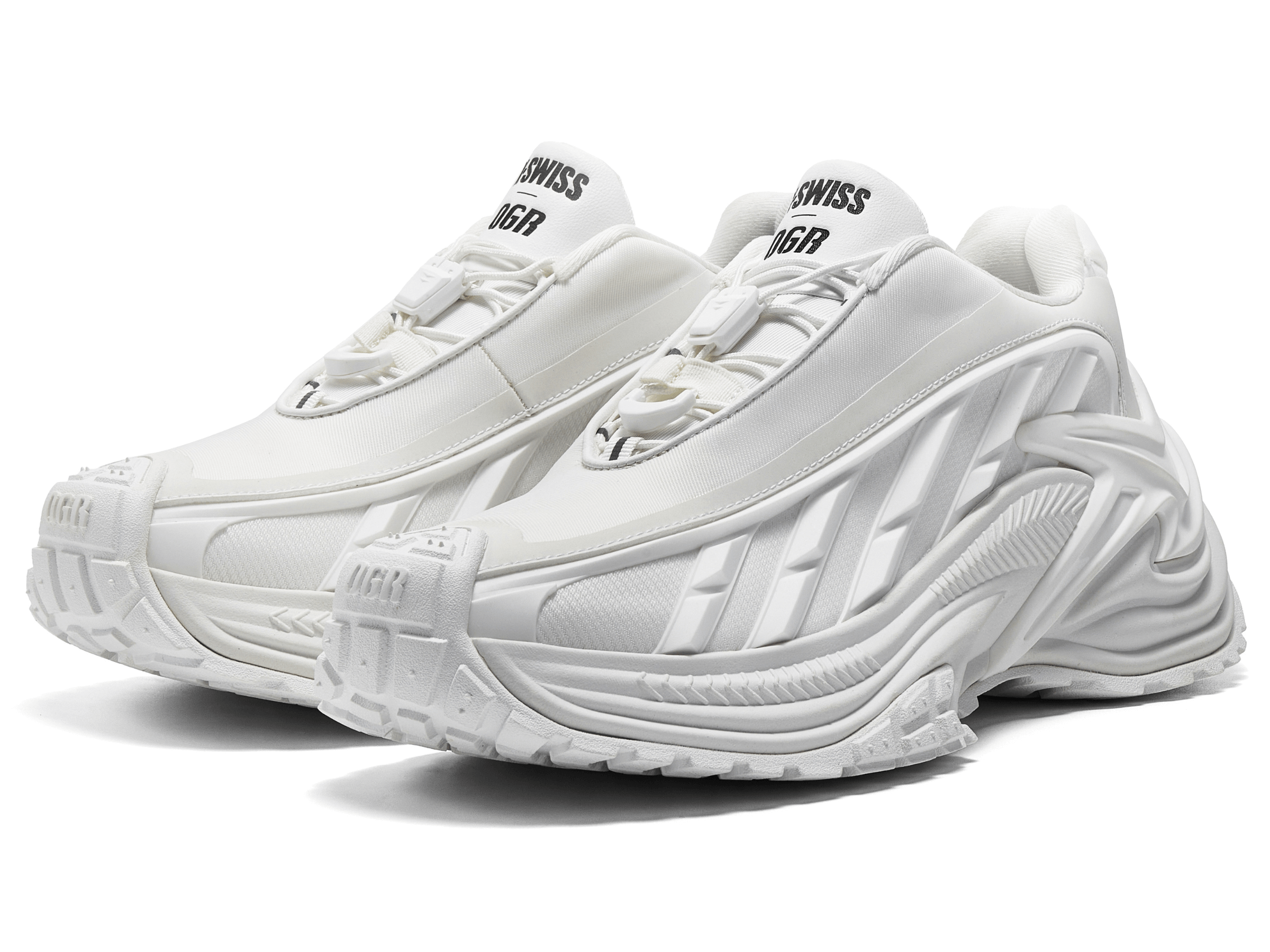 Step into the future with the limited-edition K-Swiss x OGR : Rattlesnake, an exceptional blend of futuristic design and trendsetting style. Designed to elevate your fashion game, this sneaker features an advanced 3D printing parametric aesthetic and a convenient spring-lock mechanism for ultimate ease. Blending K-SWISS’s classic designs with OGR’s unique industrial aesthetics, this series features cutting-edge structural lines and functional performance, making it a must-have for fashion-forward individuals. Available in sleek black and pure white, its durable anti-slip outsole ensures comfort and support.