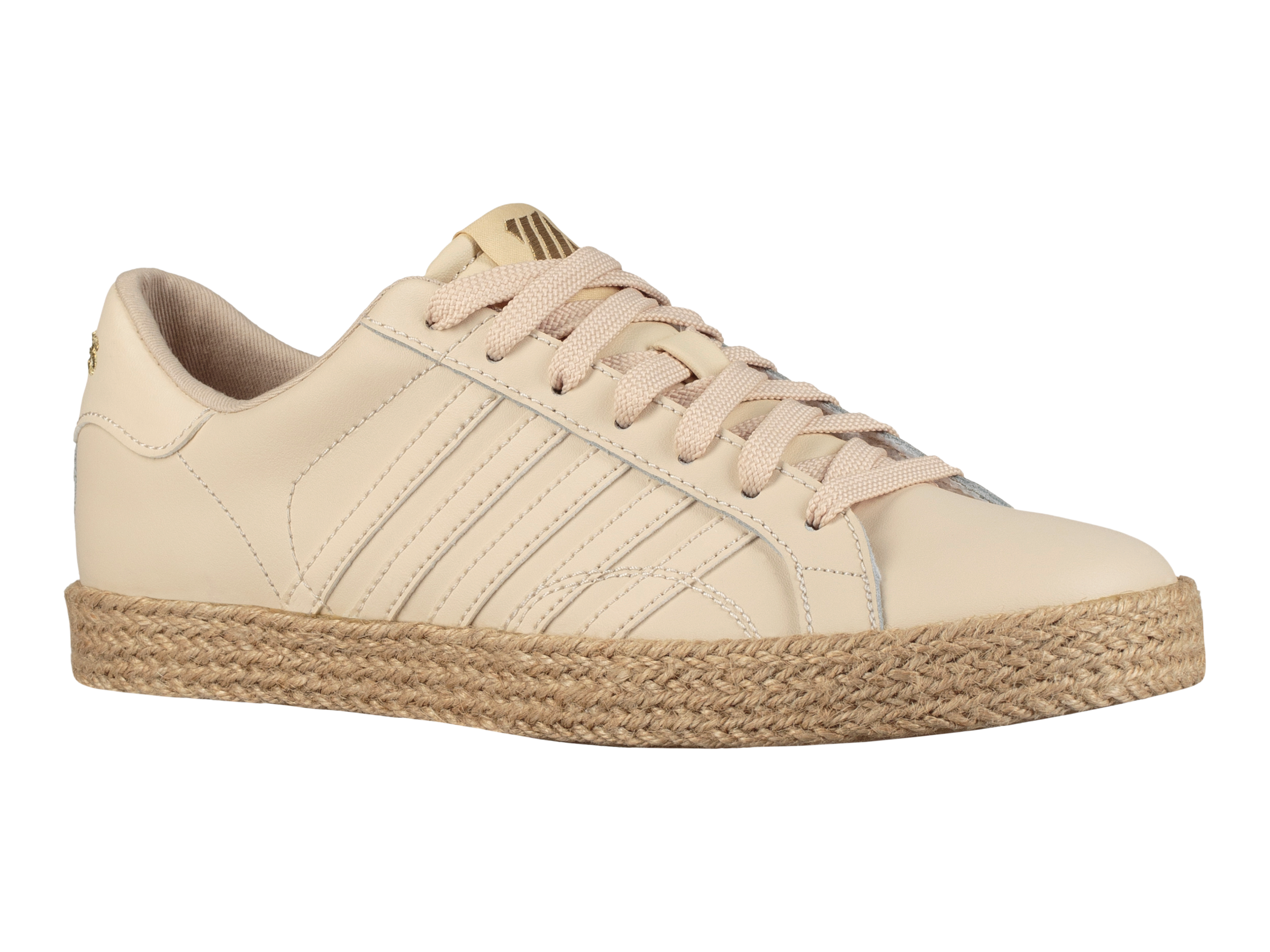 For women who covet the look of espadrilles but prefer the comfort of sneakers, K-Swiss introduces a style that combines the best of both worlds. K-Swiss adds a feminine detail to refresh the Belmont, wrapping jute around the midsole. In white and dusty neutrals, the streamlined silhouette can be paired with a variety of looks. The die-cut EVA sock liner offers a comfortable, cushioned step. The Belmont SO Jute is the perfect accessory for a breezy, effortless look.